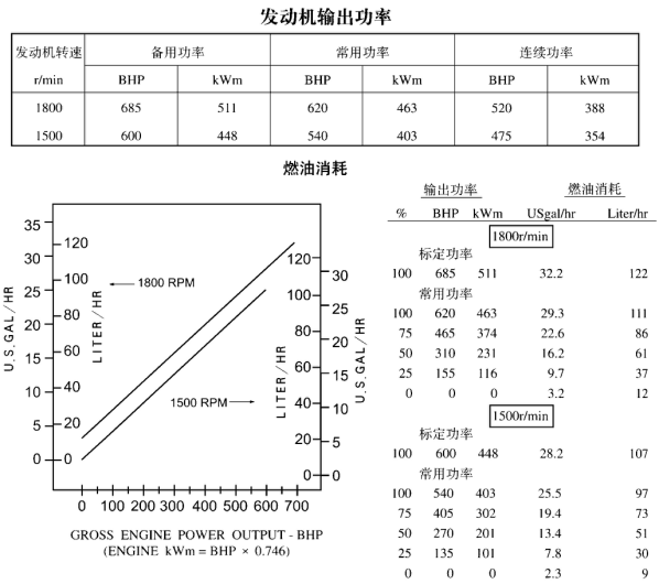 燃油消耗 L/h(U.S.gal./h)                  107(28.2)                                   97(25.5)