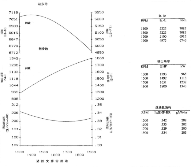 最大額定功率kW(BHP):1343(1800) @1900r/min