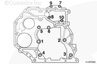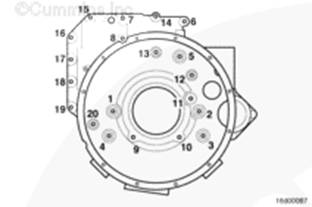 按圖示順序擰緊飛輪殼安裝螺栓。