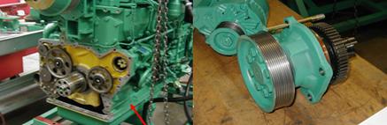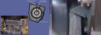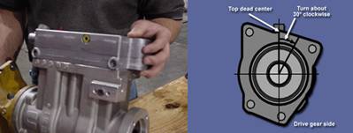 康明斯Cummins QSK23發(fā)動機(jī)用手轉(zhuǎn)動空氣壓縮機(jī)直至上止點(diǎn)。面向空壓機(jī)驅(qū)動齒輪側(cè),將空壓機(jī)順時針轉(zhuǎn)大約30度角,裝上空壓機(jī)。