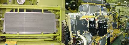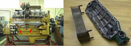 康明斯Cummins QSK23發(fā)動機(jī)右側(cè)有兩個機(jī)油冷卻器。 工業(yè)用發(fā)動機(jī)冷卻器是9片. 發(fā)電機(jī)組用發(fā)動機(jī)冷卻器是11片.