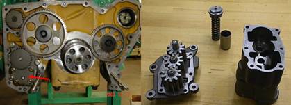 康明斯Cummins QSK23發(fā)動機(jī)機(jī)油泵裝在發(fā)動機(jī)前端.此三個齒輪泵以1.45倍曲軸轉(zhuǎn)速運(yùn)轉(zhuǎn)。