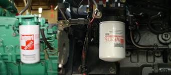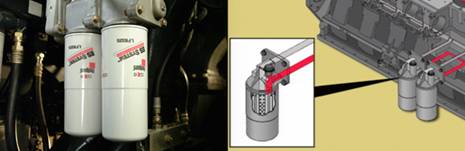 康明斯Cummins QSK23發(fā)動機(jī)左側(cè)裝有兩個弗列加 LF9325 機(jī)油濾清器。濾清器內(nèi)有30微米全流濾清介質(zhì)及10 微米旁通濾清介質(zhì)。省去了旁通濾清器部分。