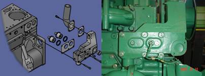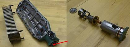 康明斯Cummins QSK23發(fā)動機(jī)在每個機(jī)油濾清器內(nèi)都有一個旁通閥,設(shè)定開啟壓力為 241 kp (35PSI).濾清器阻力過大時,旁通閥前后壓差使其克服彈簧力開啟。這使得機(jī)油旁通流過濾清器,向發(fā)動機(jī)提供機(jī)油