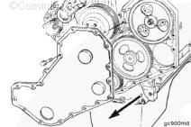 如果發現任何損壞,更換康明斯前齒輪室蓋。
