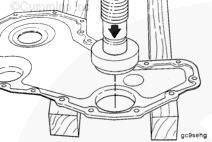 注: 如果曲軸磨損過度,發動機可使用一個采用了唇形曲軸前油封的維修用承磨襯套。