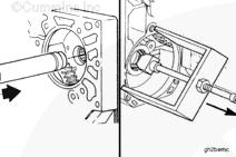 從齒輪室殼體的前側(cè)安裝軸承,直到軸承與殼體孔的前邊緣平齊。