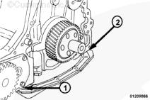 安裝固定油底殼與齒輪室殼體的 4 個(gè)螺栓。扭矩值: 47 n.m [35 ft-lb]