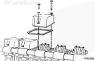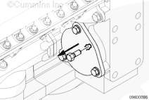當使用左排上的起動馬達蓋時,飛輪上的標記必須以 C 開頭,否則氣門和康明斯噴油器將不能正確調整,造成推桿損壞。 |