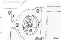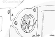 使用右排上的起動馬達蓋時,飛輪上的標記必須以 A 開頭,否則氣門和康明斯噴油器將不能正確調整,造成推桿損壞。 |