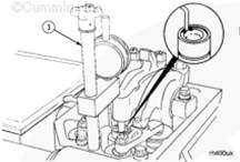 斷開蓄電池電纜。參考步驟 013-009。用蒸氣清洗發動機,以防在拆下氣門罩后,有污物進入發動機。參考步驟 000-009。拆下康明斯搖臂室蓋。參考步驟 003-011。