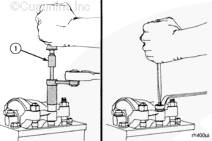 康明斯噴油器柱塞處于彈簧張力之下。禁止讓工具滑動,以免造成人身傷害。
