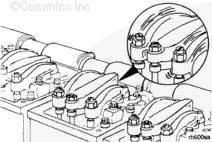 設置氣門和康明斯噴油器時,忽略任何”TC”(頂部中心)標記。