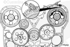 三個惰輪、兩個凸輪軸齒輪和曲軸齒輪都帶有裝配時用于對正的標記。未正確對準會造成發動機嚴重損壞。