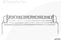K38 和 K50 發動機的凸輪軸有所不同,然而安裝步驟相同。確保安裝了正確的凸輪軸。參閱控制零件目錄 (CPL) 了解正在修理的發動機。有些較新的 K50 發動機安裝了使發動機具有不同點火次序的凸輪軸。記錄壓印在凸輪軸端部的零件號,以備將來參考。使用 Lubriplate™ 徹底潤滑每個凸輪軸和所有凸輪軸襯套。