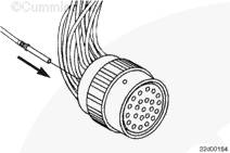將機油壓力開關電纜觸點插入 OEM 線束的 23-針 Deuts c h OEM 接頭的插孔 K ,直到它卡入接頭。