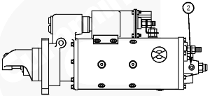 如果馬達中出現機油,在泵側端口 (2) 安裝一個 1.38mPa [200-psi] 壓力表。起動發動機,并觀察壓力表。如果出現任何壓力指示,更換 PRELUB™ 起動馬達和單向閥。如果沒有指示壓力,更換 PRELUB™ 起動馬達。