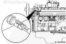 注: 這是一個可選裝的傳感器,不是所有發動機上都裝有此傳感器。如果沒有使用冷卻液液位傳感器,則安裝一個短接插頭。