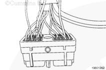 適配器線束(零件號 3165085)上兩個 50 觸點的 01 鍵接頭都用于 QST30 工業用發動機,以同時標定兩個 ECM