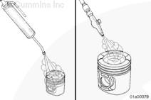 對于康明斯QST30系列發動機,必須將活塞與連桿作為一個總成安裝。參考步驟 001-054 中的安裝說明。