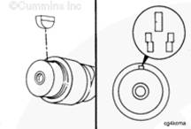可用的凸輪軸鍵包括不同的規格(偏移量)。噴油器正時由下列因素控制:凸輪軸鍵的選擇,與凸輪軸齒輪旋轉方向相比,鍵偏移的方向,偏移量。在相同的方位安裝與拆下的鍵相同零件號的鍵。參考第 6 節中的步驟 006-025。