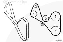 注: 拆卸驅(qū)動皮帶之前畫一幅皮帶布置圖,用以幫助安裝并確保冷卻風扇驅(qū)動皮帶布置正確。