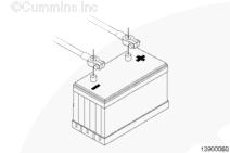 蓄電池可能有易爆性氣體逸出。為避免人身傷害,在維護蓄電池前,必須保持康明斯ISB3.9發(fā)動機艙通風良好。為了避免產(chǎn)生電弧,應首先拆下負極 (-) 蓄電池電纜,并最后連接負極 (-) 蓄電池電纜。