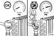 如果使用液體制冷系統(tǒng)(空調(diào)),在拆卸之前,戴上護(hù)目鏡和防護(hù)面罩,用布裹著連接件。液體制冷劑會(huì)對(duì)眼睛和皮膚造成嚴(yán)重傷害。