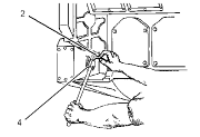 3. Turn the governor or the actuator terminal shaft to the fuel ON position until the flat face of fuel stop lever (4) contacts synchronization pin (2). This is the synchronizing position or zero reference point. Hold the control linkage in this position when the injectors are adjusted.