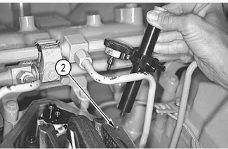 pin (2). Remove synchronization pin (2) and plug (1) from the