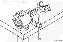 安裝康明斯ISX15 CM2250發動機活塞環時,使用臺鉗安裝連桿使總成保持在水平位置。