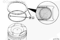 安裝這種兩件式控油環時,必須使脹環的開口與控油環的開口成 180 度。不要重疊脹環的兩端。