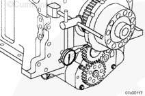 使用千分表,檢查康明斯ISX15 CM2250發動機機油泵惰輪側隙。