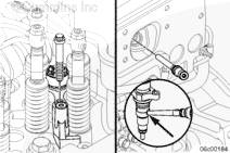擰緊康明斯ISX15 CM2250發(fā)動機噴油器壓緊卡箍螺釘。(步驟 1/2)