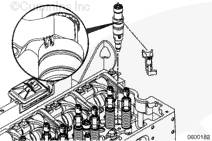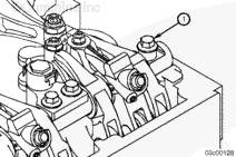 為了減少由于制動器搖臂工作間隙不足而造成氣門搖臂軸損壞的可能性,請按規(guī)定的步驟將氣門搖臂軸座合在缸蓋支座(1)上。