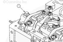 擰緊康明斯ISX15 CM2250發(fā)動機搖臂軸螺栓之前,所有氣門搖臂軸必須座合在缸蓋支座 (1) 上。