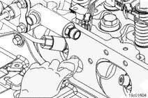 注: 安裝噴油器導線,使它們不與搖臂或發(fā)動機制動殼體產(chǎn)生干涉。如果搖臂能夠接觸到噴油器線束,會摩擦導線絕緣層,并導致噴油器電路故障代碼。