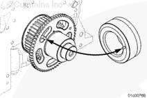 安裝轉(zhuǎn)速信號輪以便讓轉(zhuǎn)速信號輪內(nèi)徑上的槽與轉(zhuǎn)速信號輪定位銷對齊。