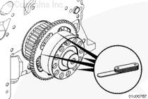 嘗試在四個位置(相距約 90 度),在曲軸齒輪和轉(zhuǎn)速信號輪之間插入 [0.25 mm] 0.010-英寸的塞尺來檢查安裝。