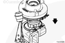 將康明斯ISX15 CM2250發(fā)動(dòng)機(jī)軸承和壓縮機(jī)殼體總成小心滑入渦輪殼中。根據(jù)墨水校準(zhǔn)標(biāo)記,按照與渦輪殼正確的方向定位渦輪殼總成。