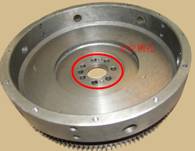 為保證發動機運轉平穩以及飛輪記號準確性,曲軸和飛輪的連接必須嚴格定位,  柴油機飛輪加工有不對稱的螺孔并用定位銷準確定位。