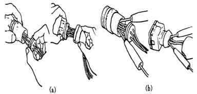 導線連接器的拆裝(a)拆出連接器 (b)裝上連接器